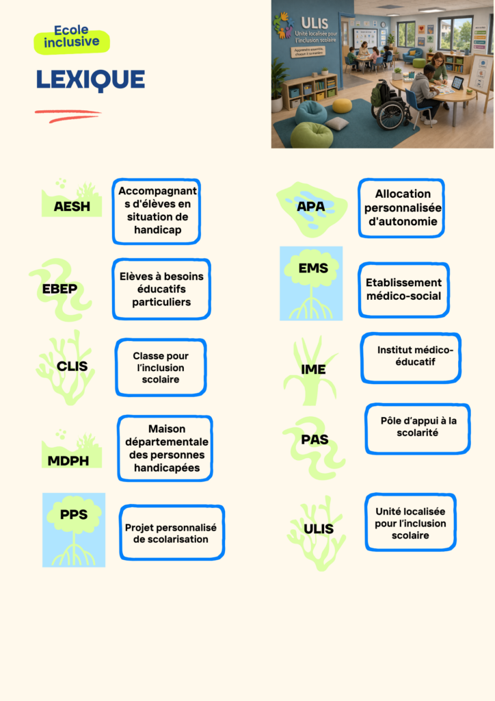 Les élèves ne restent pas tout le temps en ULIS. Ils participent à certains cours dans leur classe de référence (sport, arts, parfois français ou maths). Le temps est partagé entre la classe ULIS et la classe ordinaire. L’encadrement se fait par un personnel formé : des enseignants diplômés du CAPPEI (certificat d’aptitude professionnelle aux pratiques de l’éducation inclusive) et des AESH (accompagnants d’élèves en situation de handicap) pour la plupart.